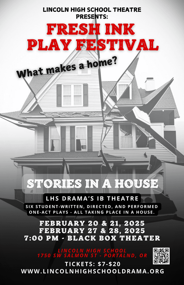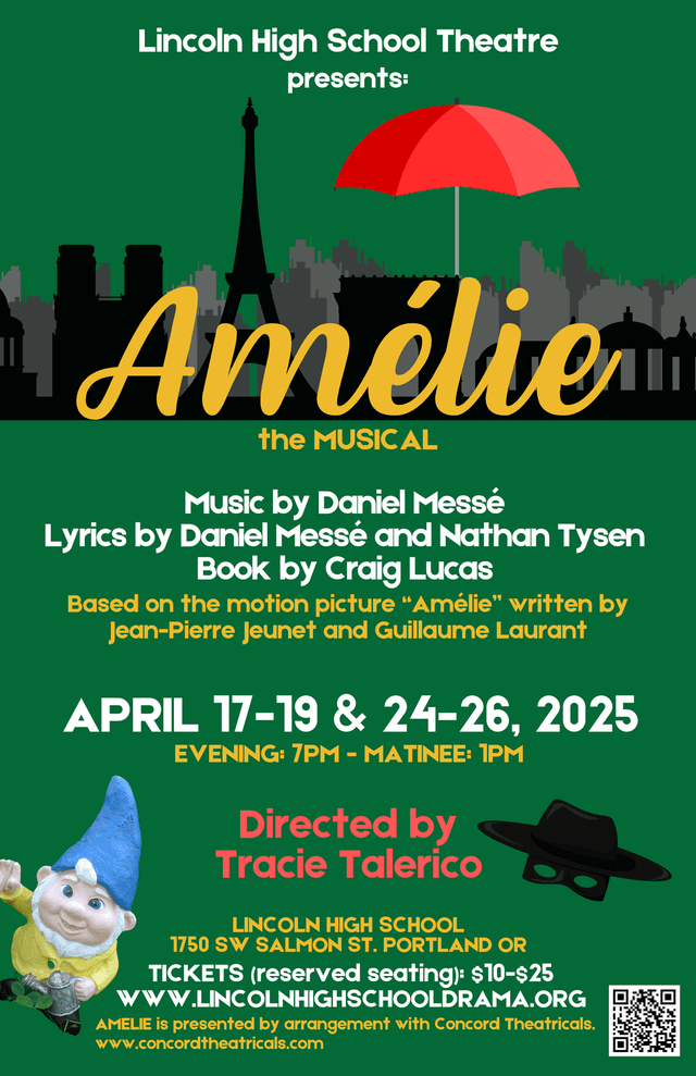 I've been working in technical theatre since 2023 in various roles. At my High School, Lincoln High School, I operated spotlights for the 76th & 77th annual Talent Show (2024 & 2025) and later learned (and started leading!) set building for productions like "Clue: On Stage" (2024) (lots of fun stories about building rolling rooms, but that's for another time 😅). I then used those building skills to design and build to set for our play festival, "Fresh Ink" (2025). For "Amélie" (2025), I not only helped build the set but also established and managed the projections department. This was the first time my school had ever attempted to use projections in a show, so I had to start from scratch and learn everything myself. Learn more! Beyond school productions, I helped Portland Panto Players as the Second Sound Engineer for "Sleeping Beauty" (2024), and completed an internship at Broadway Rose Theatre as a spotlight operator for "The Jungle Book" (2024).